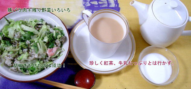 つ葉を混ぜて出来上がり、紅茶と食べました。