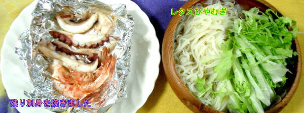 見る会のポスターはりやビラ配りで飛んでしまい、お昼は大急ぎ、残り刺身を焼いて、ひ
