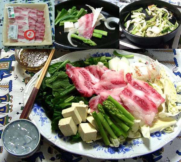 前から買ってあった脂タップリの牛バラ肉薄切り、これにキャベツの軸(葉の真中に縦に入