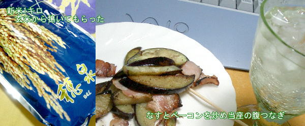 搗いてもらいました。浅漬けを作ったり、手筈を済ませてなすとベーコンを炒め、焼酎ロ