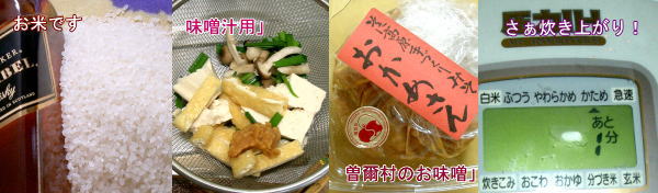 お米をといで火にかけます。味噌汁の用意、食卓の用意、、そしてかまから湯気が吹き始め