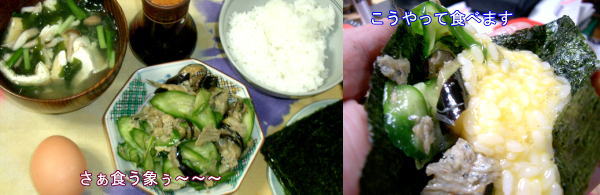 足ししたときに胡瓜に茗荷もきざんで浅漬け(今日は醤油味)がフライングしていたんです。