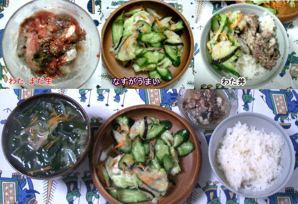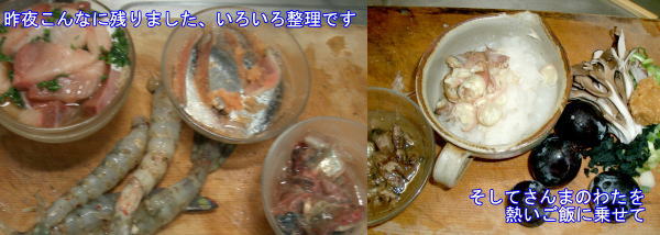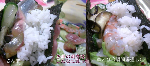 刺身の残り。さんまは明太子で和えておきました。出して着たら結構新しいのです。手巻き