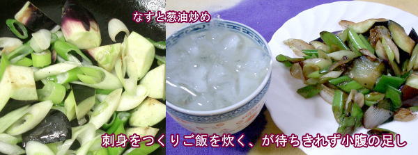 なす(半分浅漬けに取った残り)を油で炒め、しょう湯をまわしがけしました。