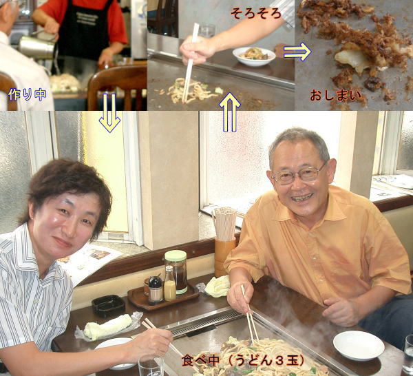 モツ(基本はホルモン、牛の小腸)を使って鉄板で焼きうどん、なかなかうまいんです。今