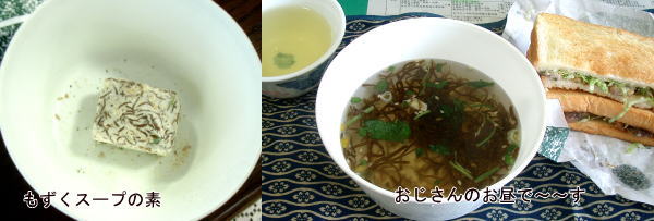 袋入りわかめスープの素、冷たい麦茶でお風呂に持って生きます。