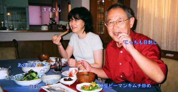 ご帰宅です。刺身をひろげたり、野菜を漬けたり煮たり、お魚(の頭)を煮たり、豪華大夕食で