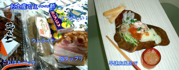 明日からツァー ほどいて醤油漬け ツァーお土産 山の幸 鹿児島へ 律子さんお誕生会 レポートなど 根建家でご馳走 |