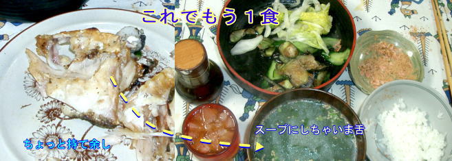 袋入りの若布スープを入れてもう一食です。お風呂も数えて夕食3回はちょっと舌「はしご」