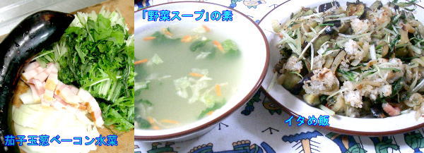 ちょうどよくなっています。三度の中身は水菜と豚を傷めました。この他にスープの具はベーコ