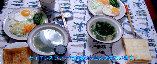 サイエンスツァーを明日に控えて、昨夜から主人が来ています。珍しく2人分の食卓です。