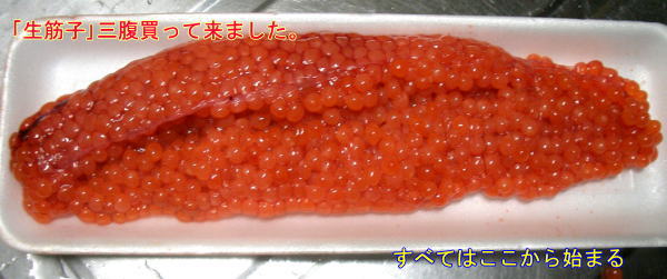 なんと生筋子がたくさん売っていました。去年はちょっとしか買えないで悲しい思いをしたの