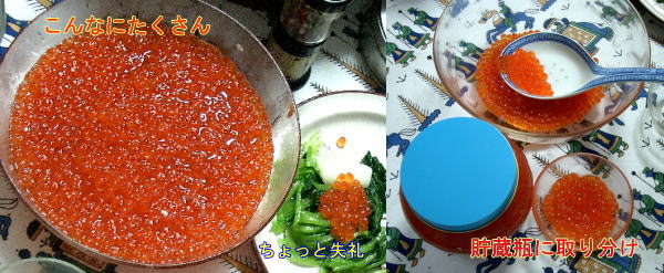 あんまりゆっくりしているといくらが白っぽくなって来茶いますから早い目に掬い取って順
