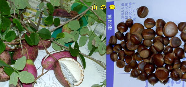 アケビ、栗、栃の実・・・・・・そこら中いっぱい(らしい)です。おじさんには栗ぐらいしか見つか
