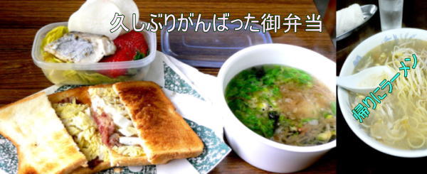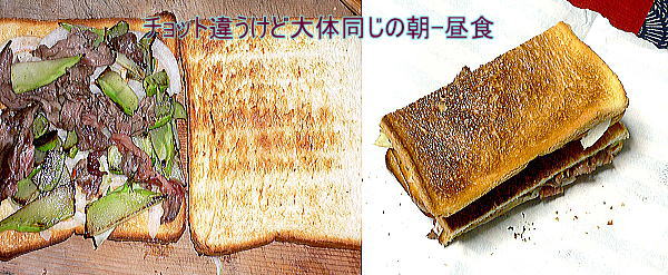 お弁当は豪華トーストサンドイッチ、でも朝の残りということがありあり。