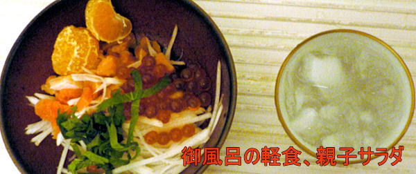 夜は御風呂であま塩鮭といくらの「親子」サラダです。