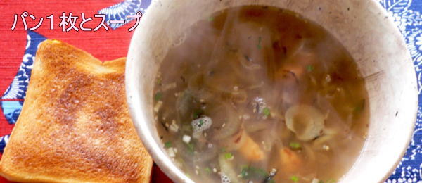 朝は大急ぎそこらにあるものをかき集めて、でもスープもお忘れなくそこら