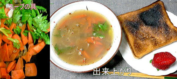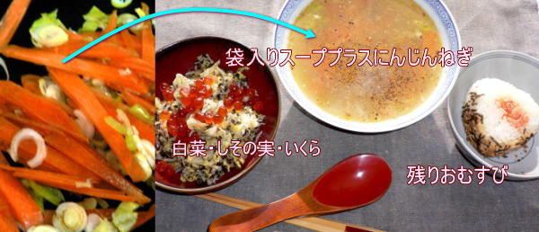 だいた)」、袋スープにチョットにんじんを切って、で済まそうとしていたら、