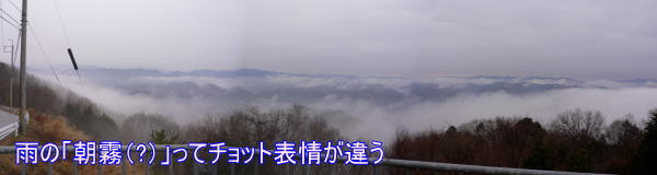 雪と思っていたのですが、けぶるような雨、きっと朝霧と似たような条件