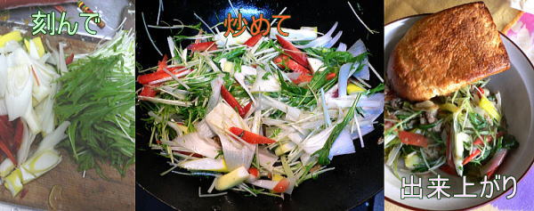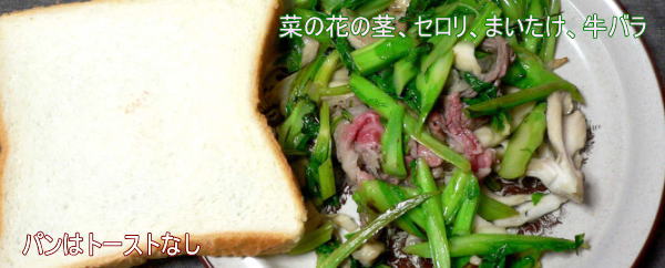 ない、なんて負け惜しみを言いながら、菜の花、セロリ、まいたけと炒めた