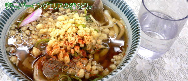 このPAの食べ物はまぁまぁです。が、この猪肉うどんの猪はたっぷり入っ
