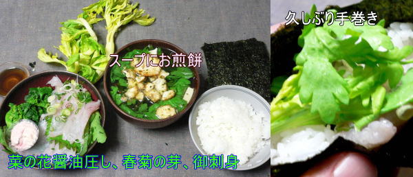 天文台のkaeriにはセロリ、菜の花、牛ばら肉、おさしみ・・・・ついつい