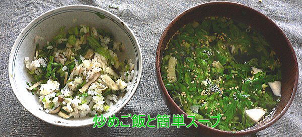 簡単に冷凍ご飯チン、簡単スープで、でもうまい。