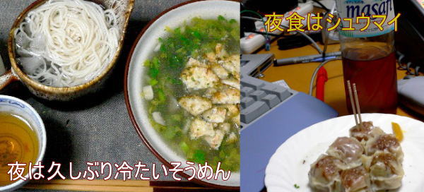昼は何を食べたか覚えていません。夜は冷やしそうめんとスープ(変な