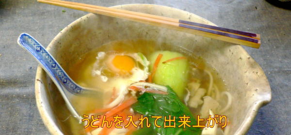 そしてうどんの出来上がり、卵っていい雰囲気ですね。