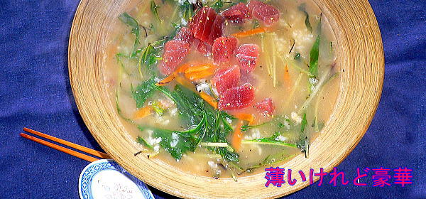昨夜の残りのマグロ、おかゆの相手には不向きかな?先ずおだしを