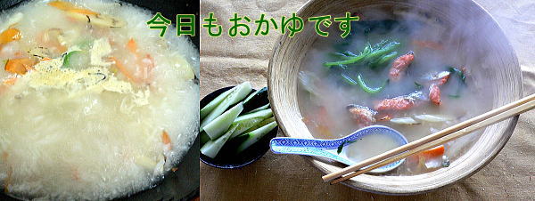 朝はまたおかゆです。ご飯は50gくらいしか入れないので、お米のスー