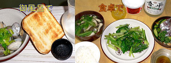 と作って、入りながら軽く食べます。今日はその間にご飯を炊いてお刺