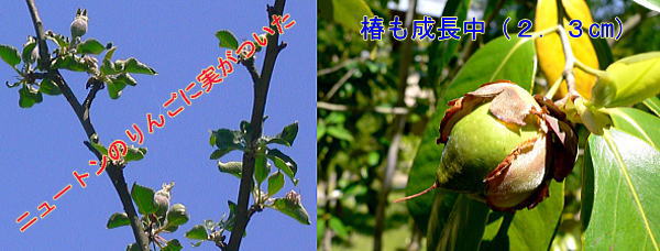 でしょうか?ニュートンのりんごが実をつけました。今度は育ってくれる