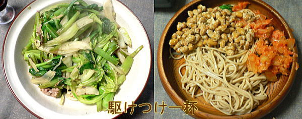 化しつつあります。左はセロリ、菜っ葉、ばら肉・・・炒めです。