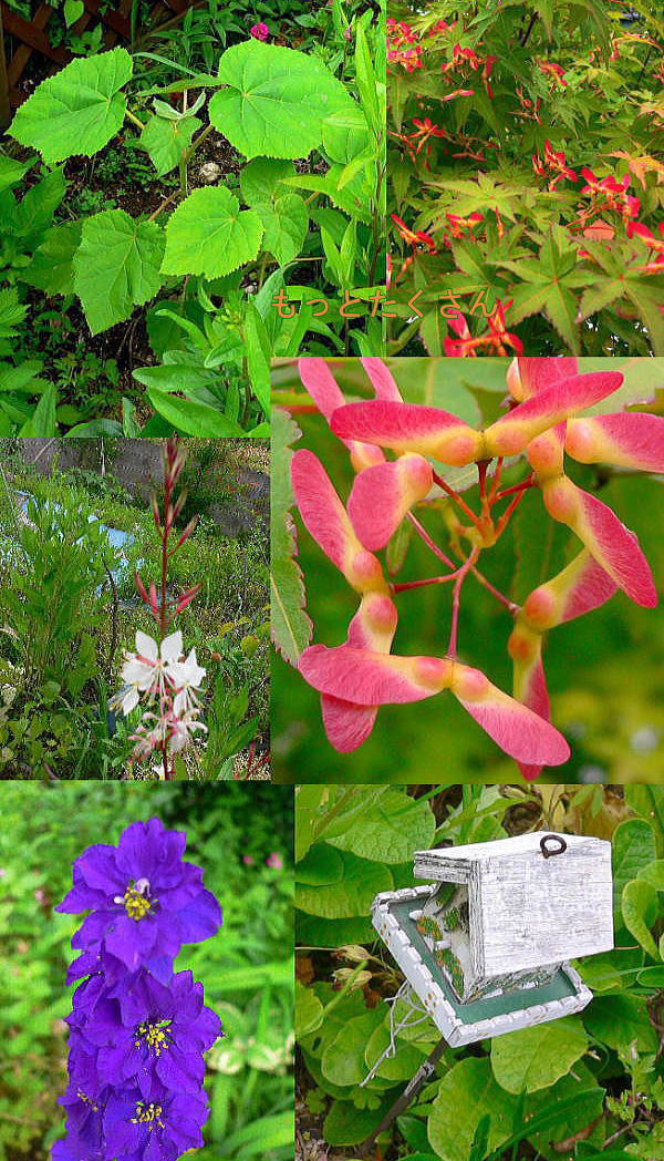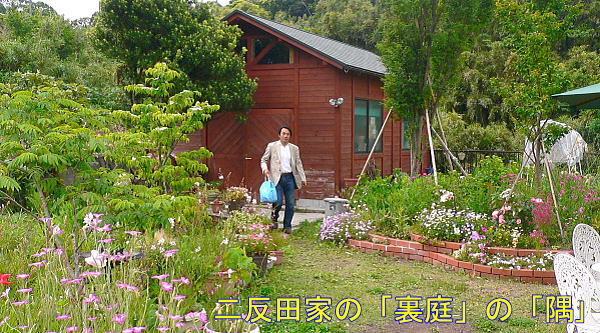 でおられます。向こうにある木造物置に道具、材料、種・・・・を入れる物