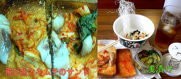 サンドイッチは飛び魚の刺身をチョッとあぶって、キムチを添えました。