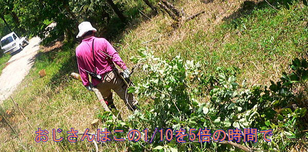 チェーンソーで樹を切る仕事はなれている人たちにまかせて、切った