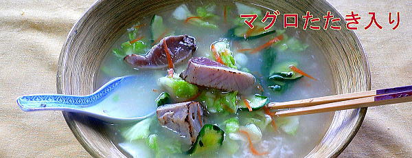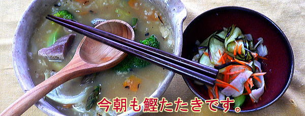 マグロの「たたき」の翌朝のおかゆは今度は鰹です。それから、ここ