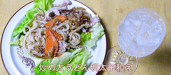 玉葱、人参と豚肉を炒めてうどんを入れました。あっ明太子で絡めま