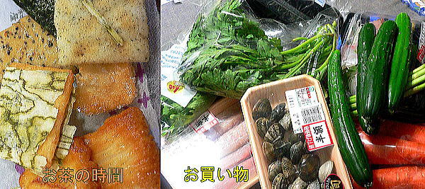 お茶の時間は、出張先からの手土産が出ます。今日はあられの袋