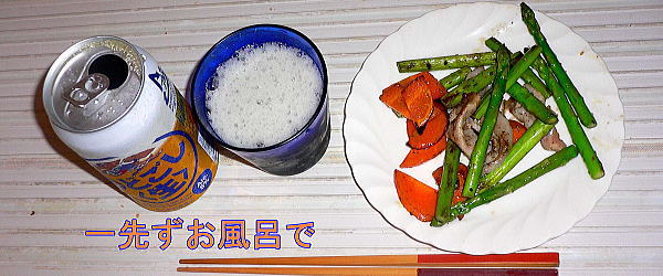 一先ずアスパラと人参を豚と炒めてお風呂です。