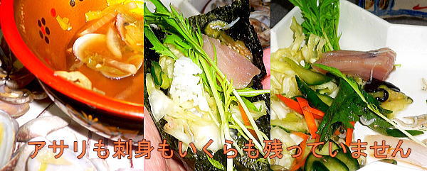 左からお刺身は「よこわ(マグロの小さいの、やすくてうまい)」と飛び