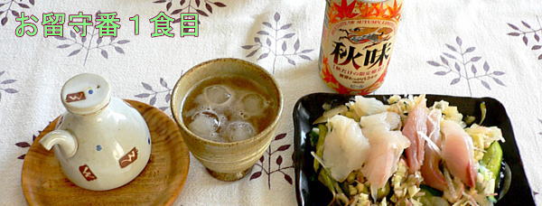お昼は昨夜のお刺身に適当に薬味をのせてビールです。