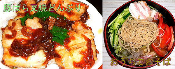 ま舌。左のお肉は豚バラの叉焼をご飯に乗せて、丼飯。脂たっぷりで