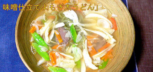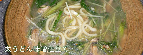 夜は平凡にふとうどんの味噌仕立て、温まってよく眠れますよ |