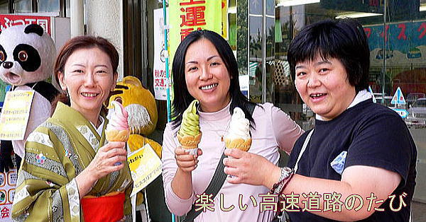 祭りの模様はどこかのおへそを適宜クリックしていただくことにして、お食事を続けます。もちろんおじさんも多少は活躍しましたが、無事フェスティバルも終わり、帰りは林さんの支配下です。なぜ?だって、200円の、それも素敵な温泉がある、少しインターに向かっていけば食堂がありこれも結構・・・・ |