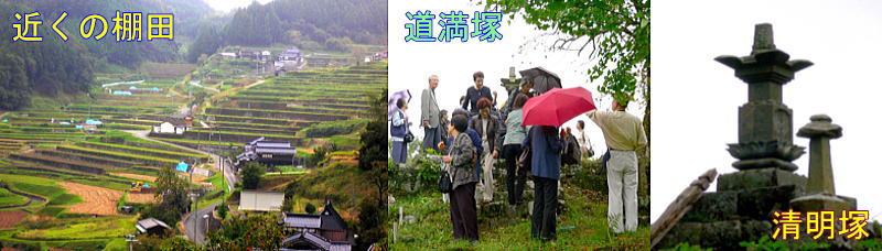 陰陽道で勢力を争った安倍清明と芦屋道満の塚が、狭い谷を隔てて経っているんです。これって珍しいんですって。 |