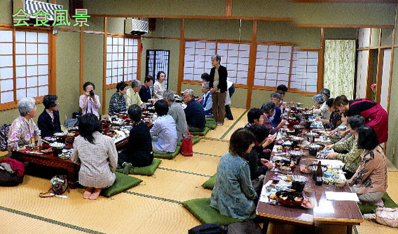 野点とお店というメインの活動以外にも、それはそこ、まつりですから、「食べます」でもいろいろ賑やかです。きらら庵グループは秘めさま仲良しの太田さんの配下で、朝から晩、晩から朝と飲んだり喰ったりします。おそろしいようなくさやが出てきたり、信州からそば名人が来たり・・・・・です。 |
