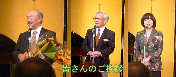 丹波の森公苑長河合雅夫さん退任のパーティーです。知事が発起人代表、前知事が挨拶に出るなど、盛大に開かれました。 |