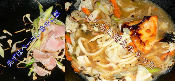 もうこの季節朝はチョッと寒いんです。だから味噌うどんです。 |